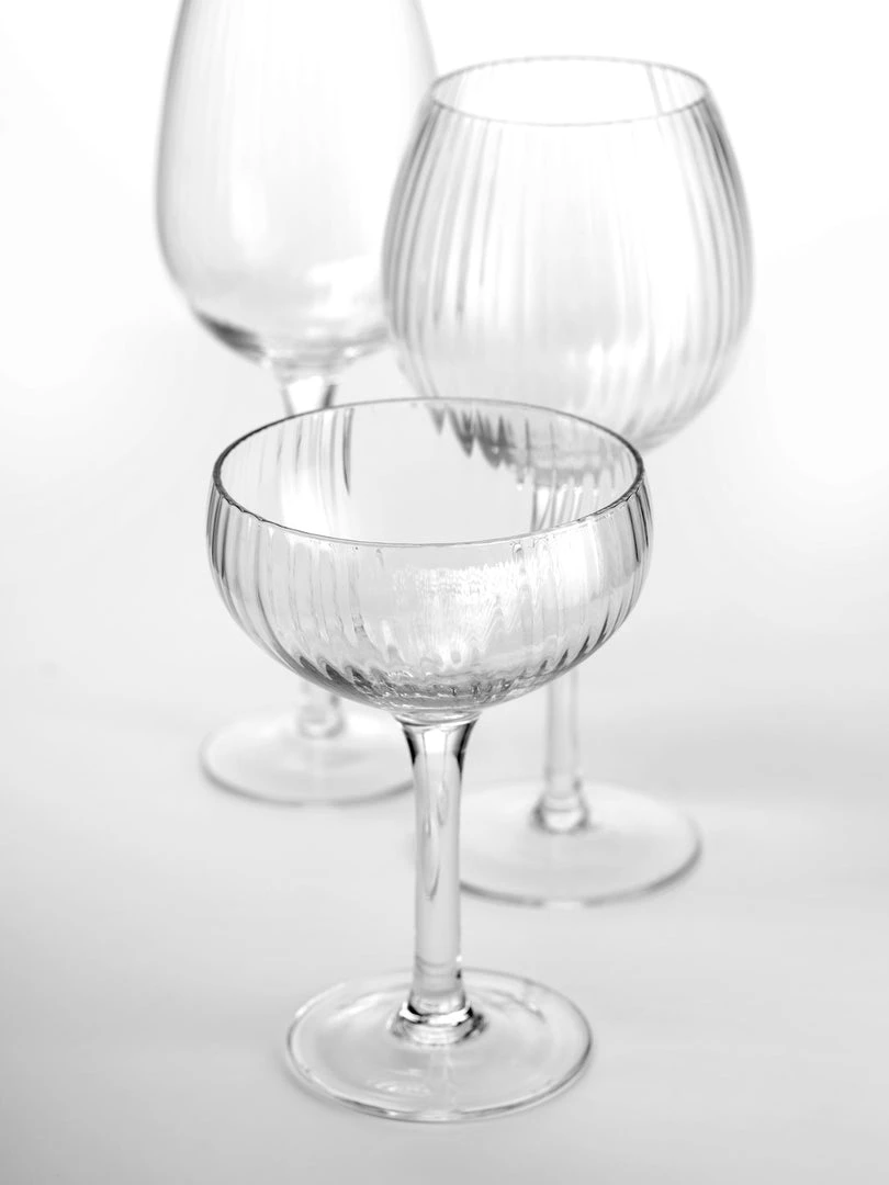 Part of our range of Portia Glassware. Delicate and fine with a ribbed design on the bowl, these Coupes are perfect for that special occasion for Champagne or Cocktails.