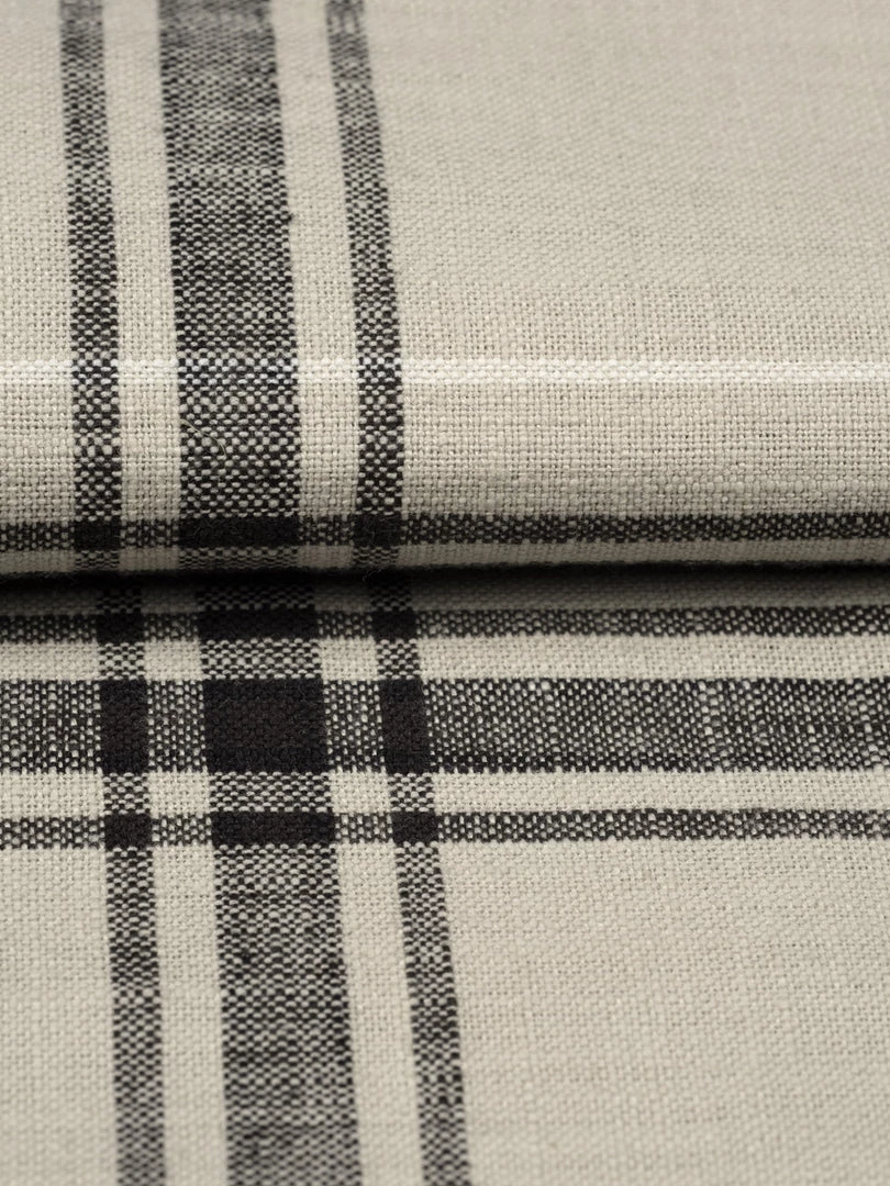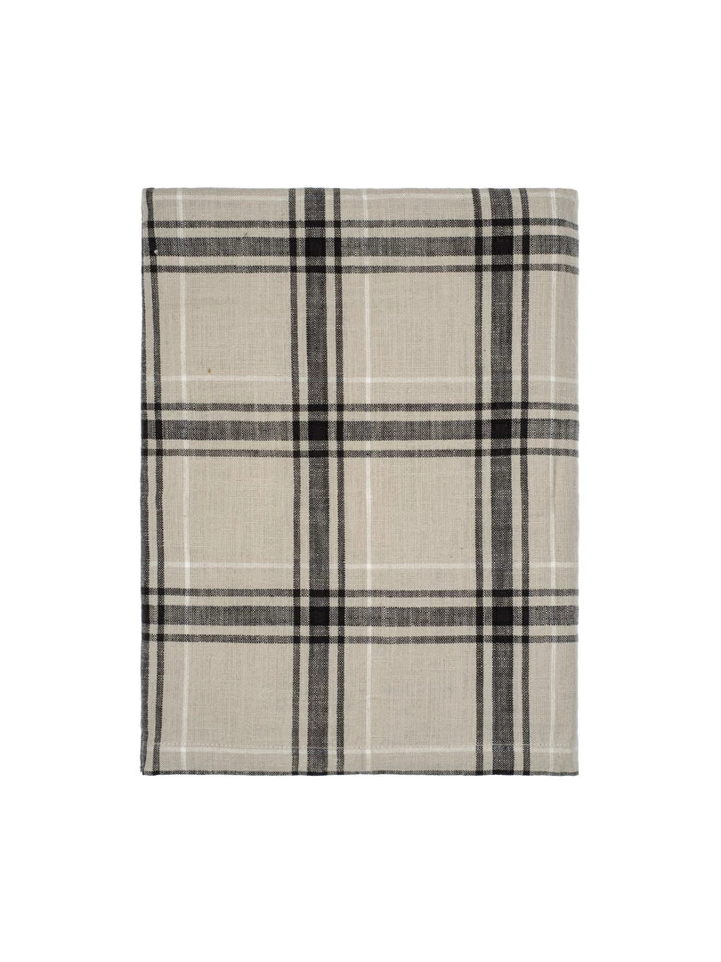 100% Cotton tablecloth with a large iron grey check on a natural background.