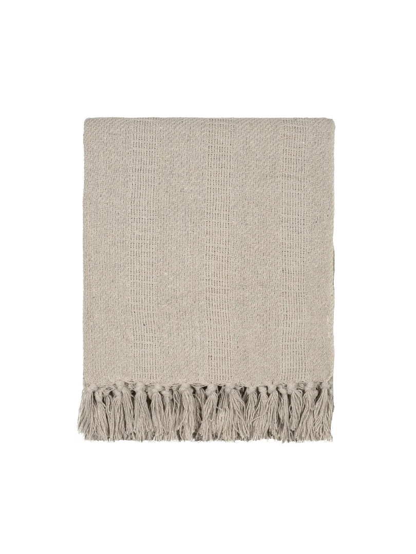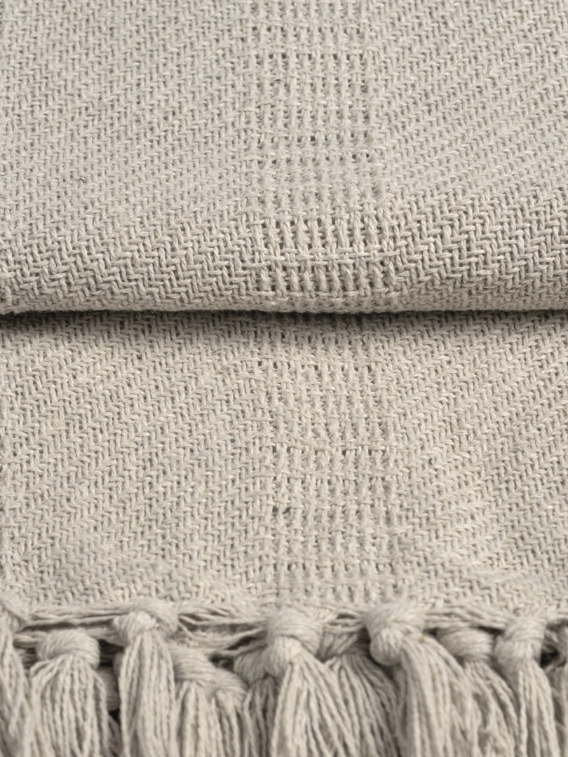Recycled cotton throw in warm beige, finished with knotted tassels.