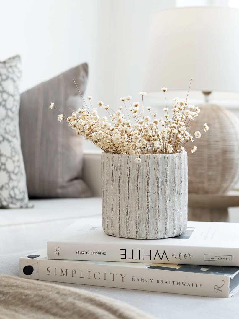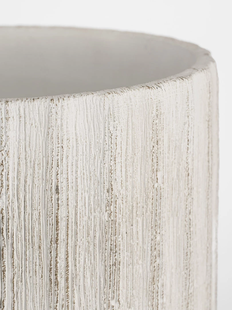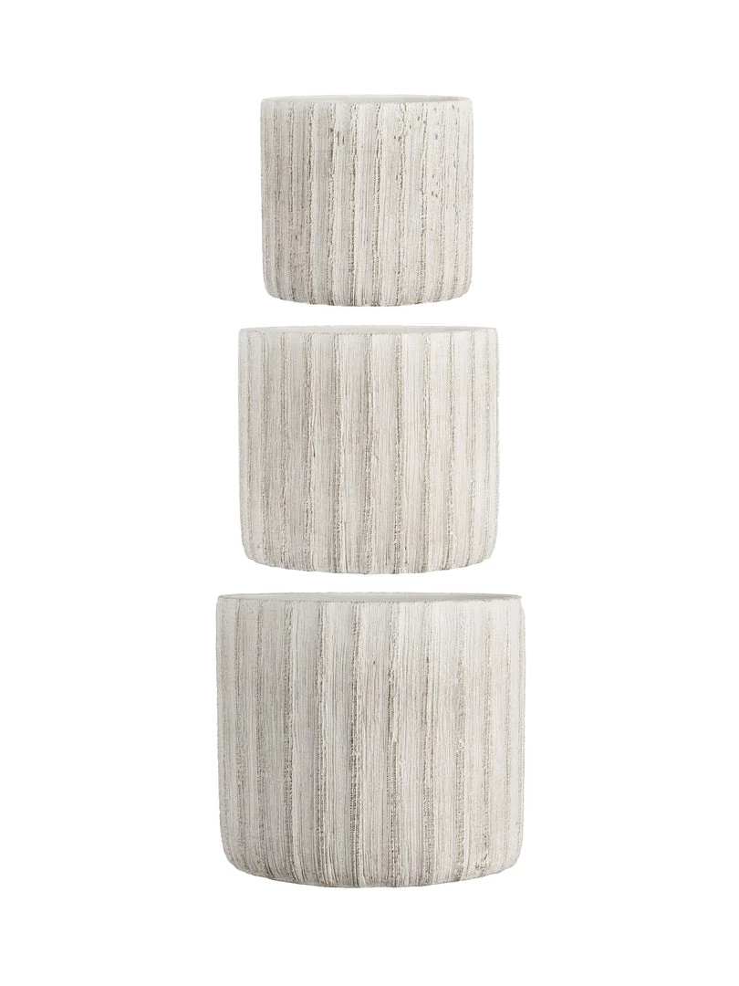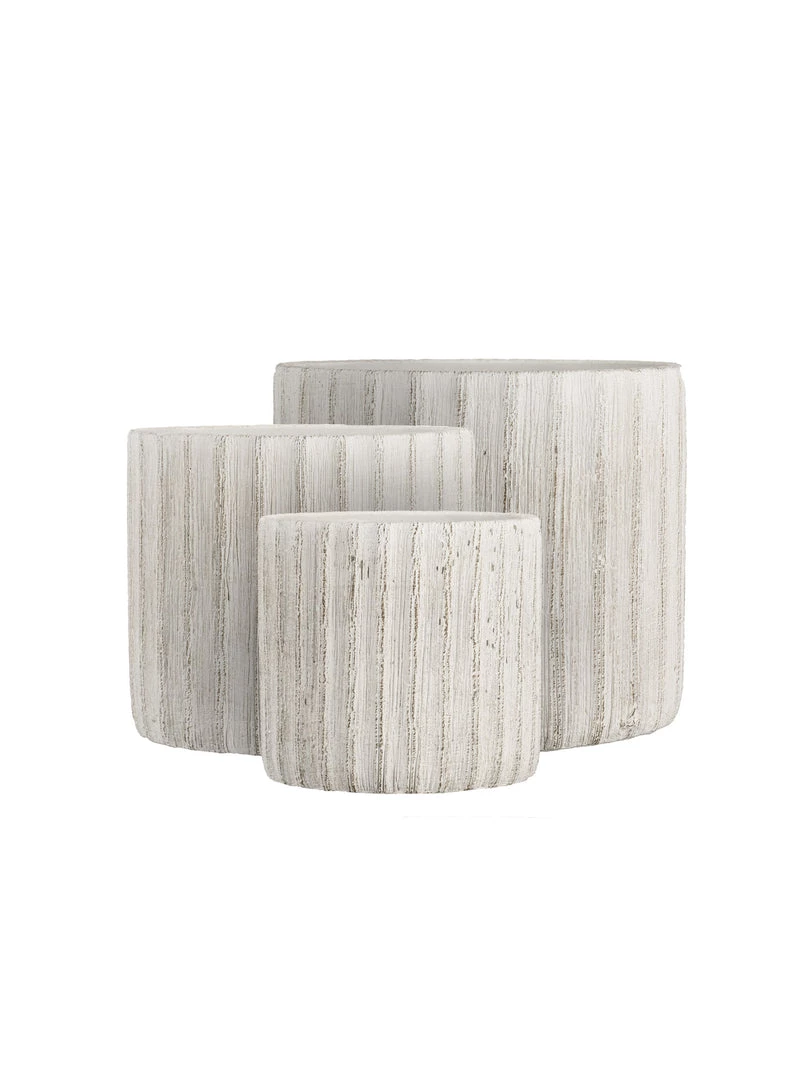 Eloise Planters are a modern update on the traditional plant pot. These white melange pots come in three sizes and have a subtle ridge design.