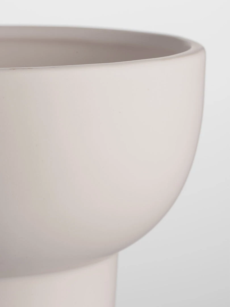 Ceramic matt off-white glazed pedestal bowl, smooth and tactile this bowl has a sleek silhouette, use as a planter or an alternative fruit bowl.