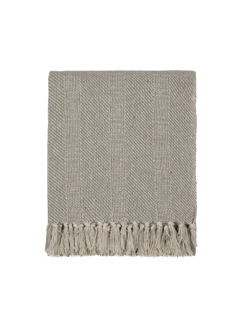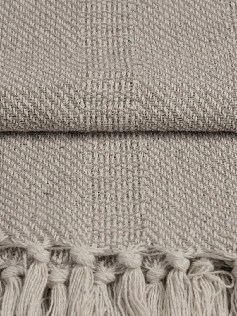 Recycled cotton throw in warm natural and black, finished with knotted tassels.