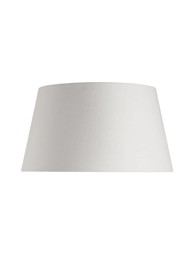 Open weave white cotton 45cm taper shade. This luxurious heavyweight shade suits all bases and offers a natural yet opulent finish.
