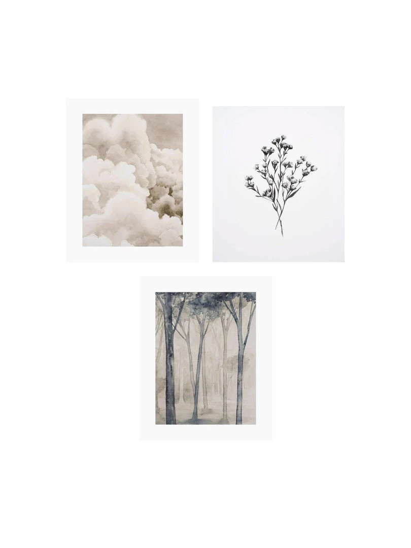Trio of art prints selected for their complimentary colours, creating a perfect mini gallery.