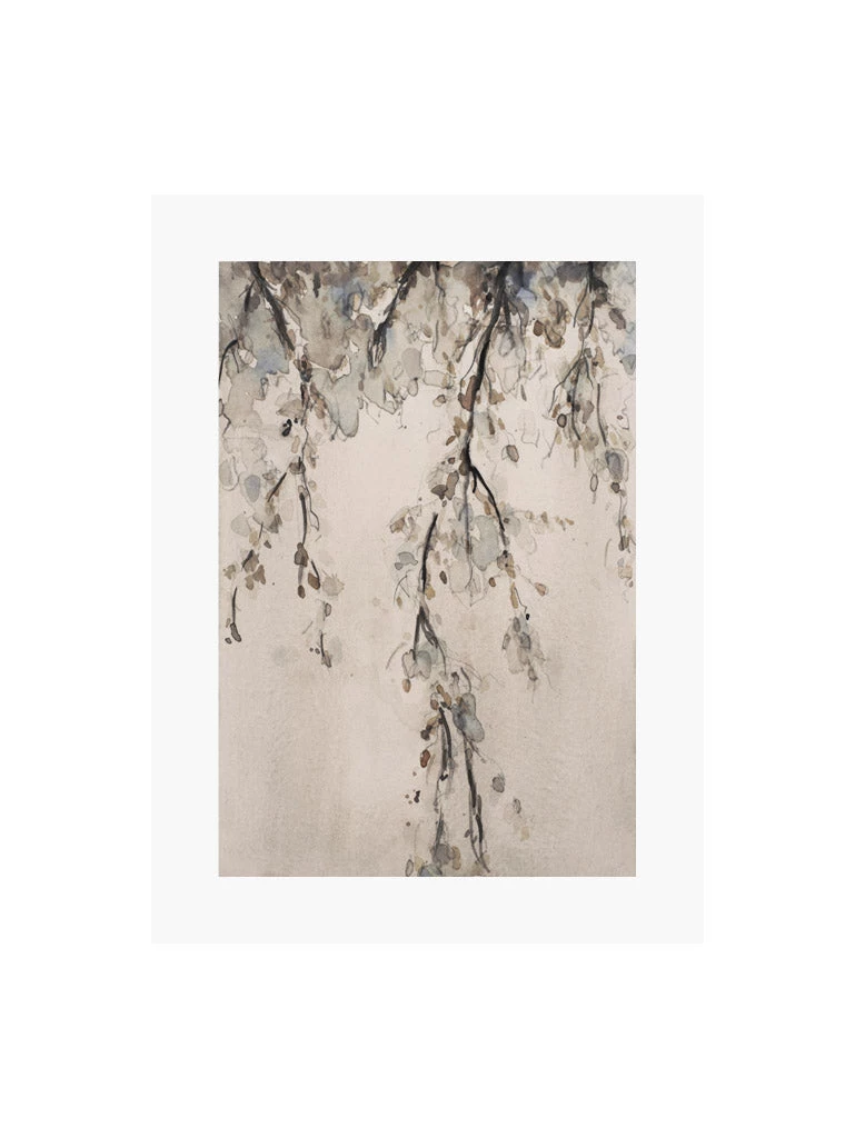 Art print of water colour branches in tones of beige, brown and soft hints of blue.