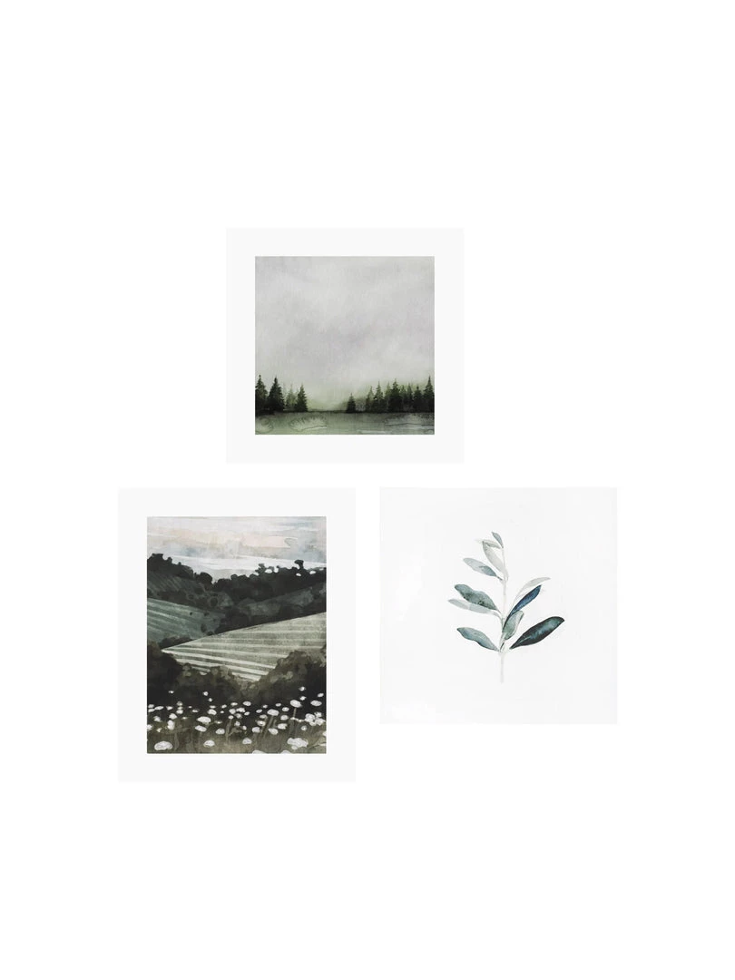 Trio of art prints selected for their complimentary colours, creating a perfect mini gallery.