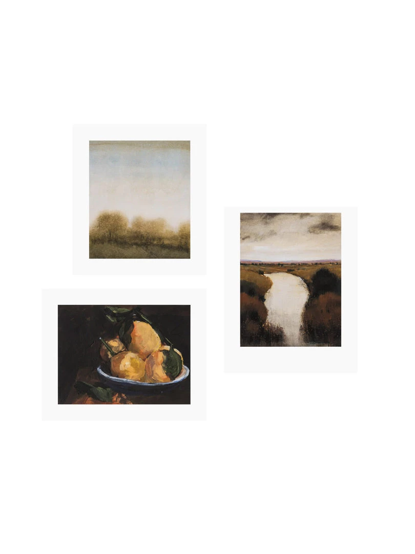 Trio of art prints selected for their complimentary colours, creating a perfect mini gallery.